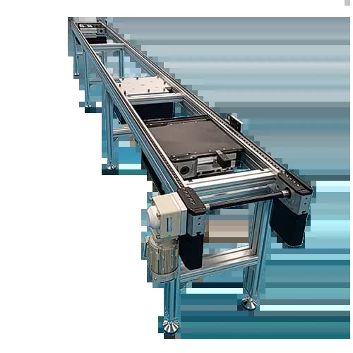 Vitrans es un socio estratégico de Direct Conveyors. Fundada en 2013, Vitrans se ha establecido rápidamente como líder en la industria, aprovechando una sólida experiencia en Investigación y Desarrollo e Ingeniería. Nuestra oferta de sistemas de paletas estandarizados asegura costos bajos y tiempos de entrega cortos, lo que nos convierte en un socio confiable para empresas de todos los tamaños. Nos enorgullece nuestra credibilidad y el uso de componentes comunes, que simplifican nuestros procesos y mejoran la fiabilidad del producto. Con la asociación con Vitrans, podemos suministrar sistemas estándar de paletas moldeadas. Los sistemas de paletas utilizan transportadores no sincrónicos para acumular una paleta en configuraciones de bucle o sobre/abajo. Estos sistemas pueden construirse utilizando varios tipos de transportadores y a menudo incorporan diversos mecanismos para seleccionar o posicionar las paletas en diferentes estaciones o transferencias.
